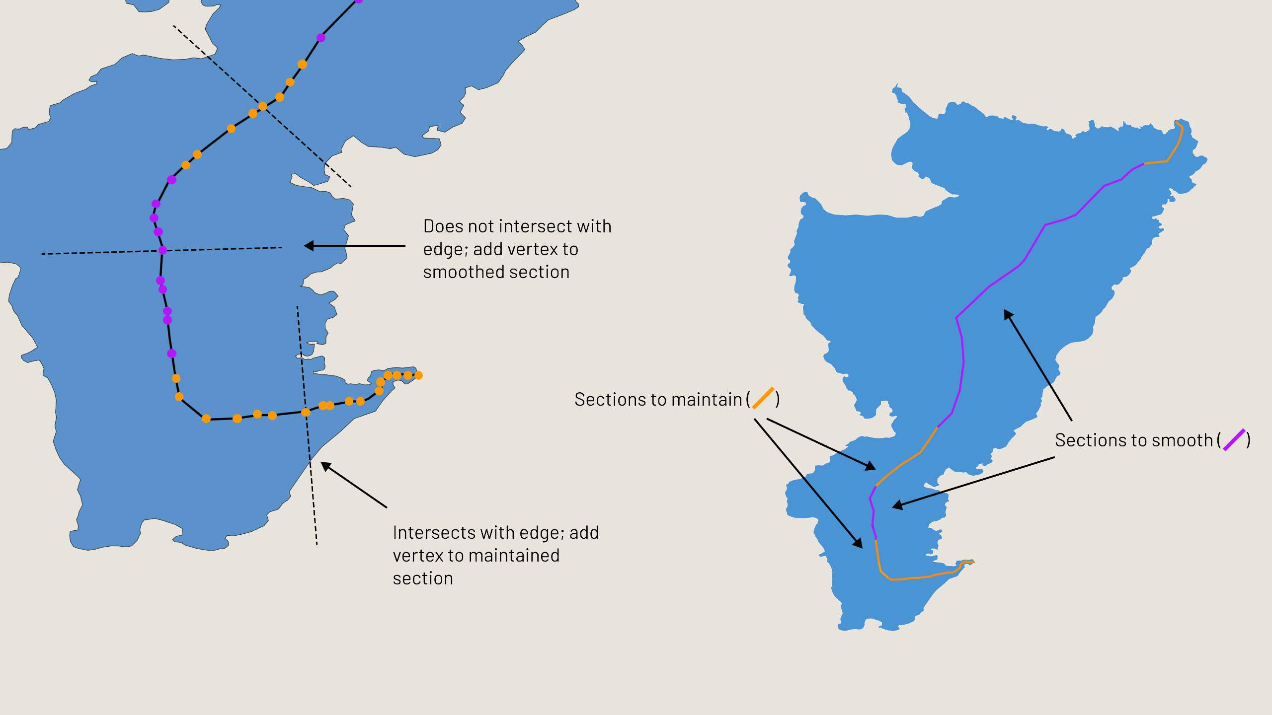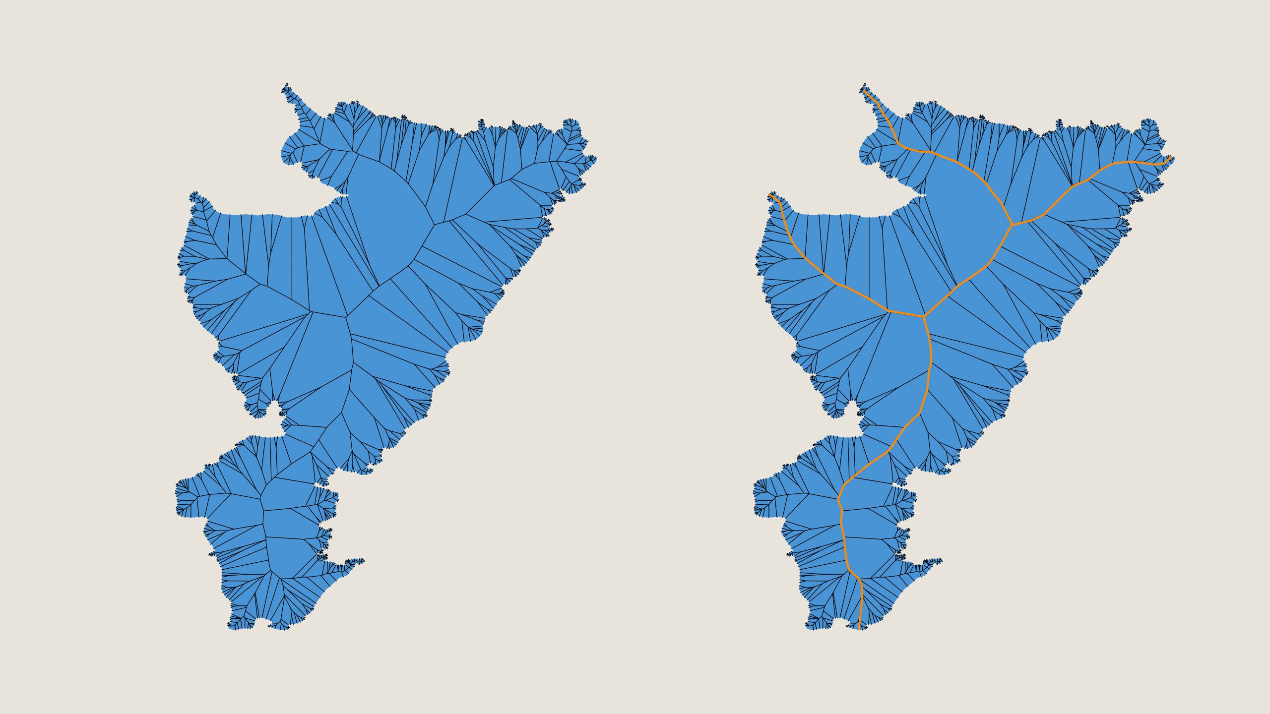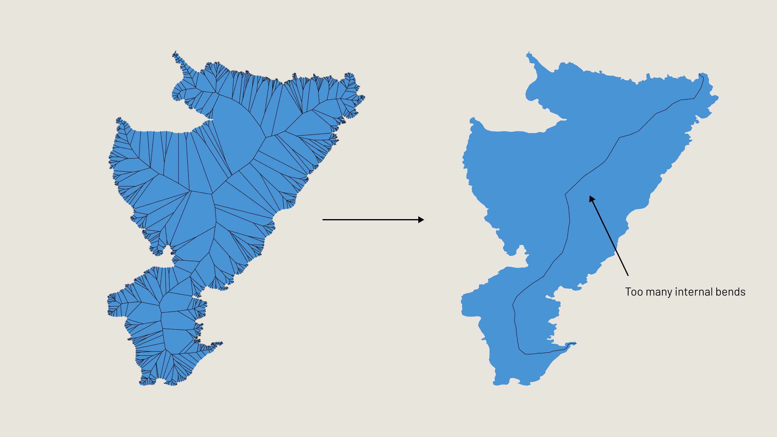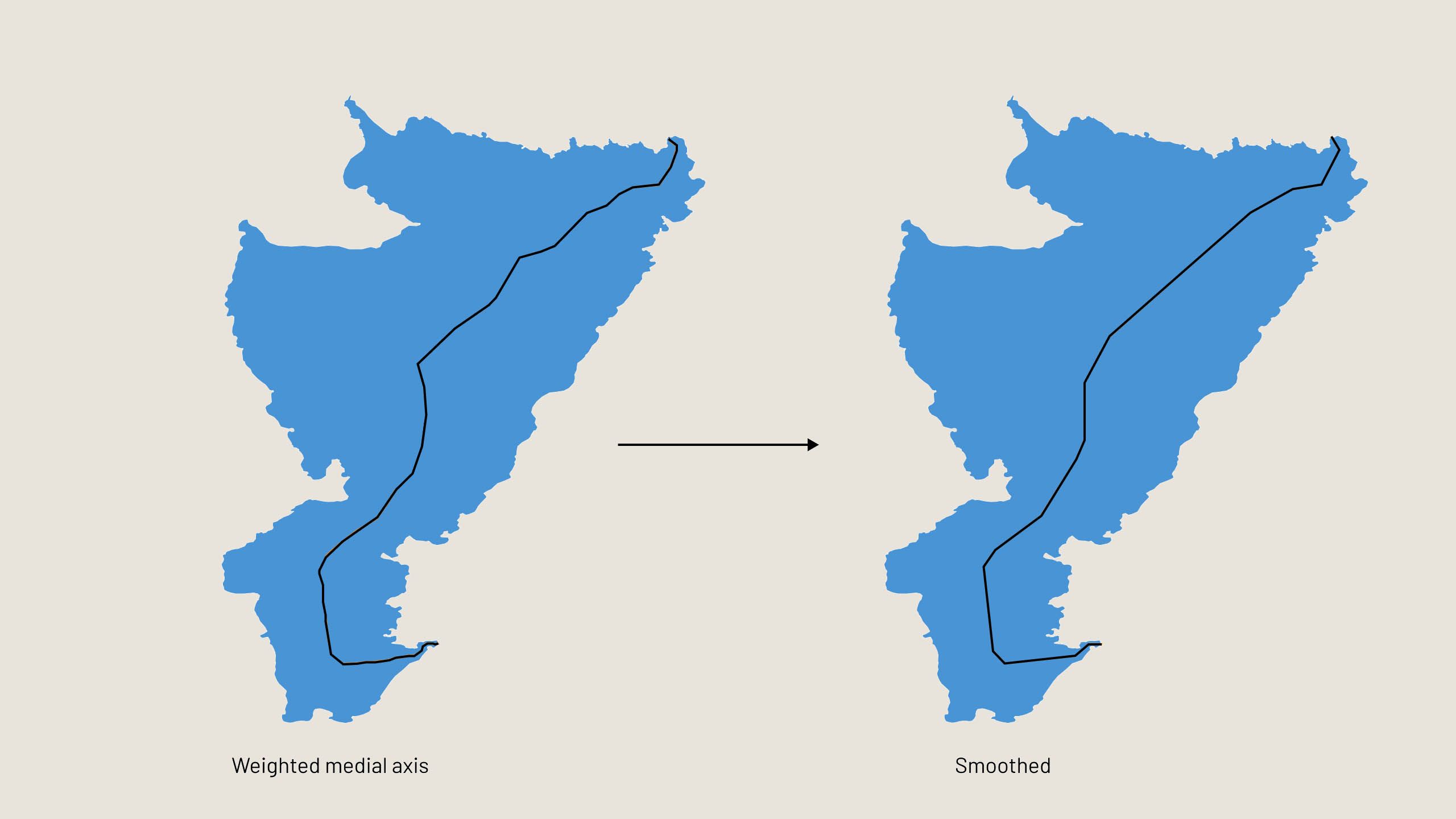 This combination of smoothing methods resulted in lines that were both precise where necessary in narrow regions, and broad in more open regions of the polygon.