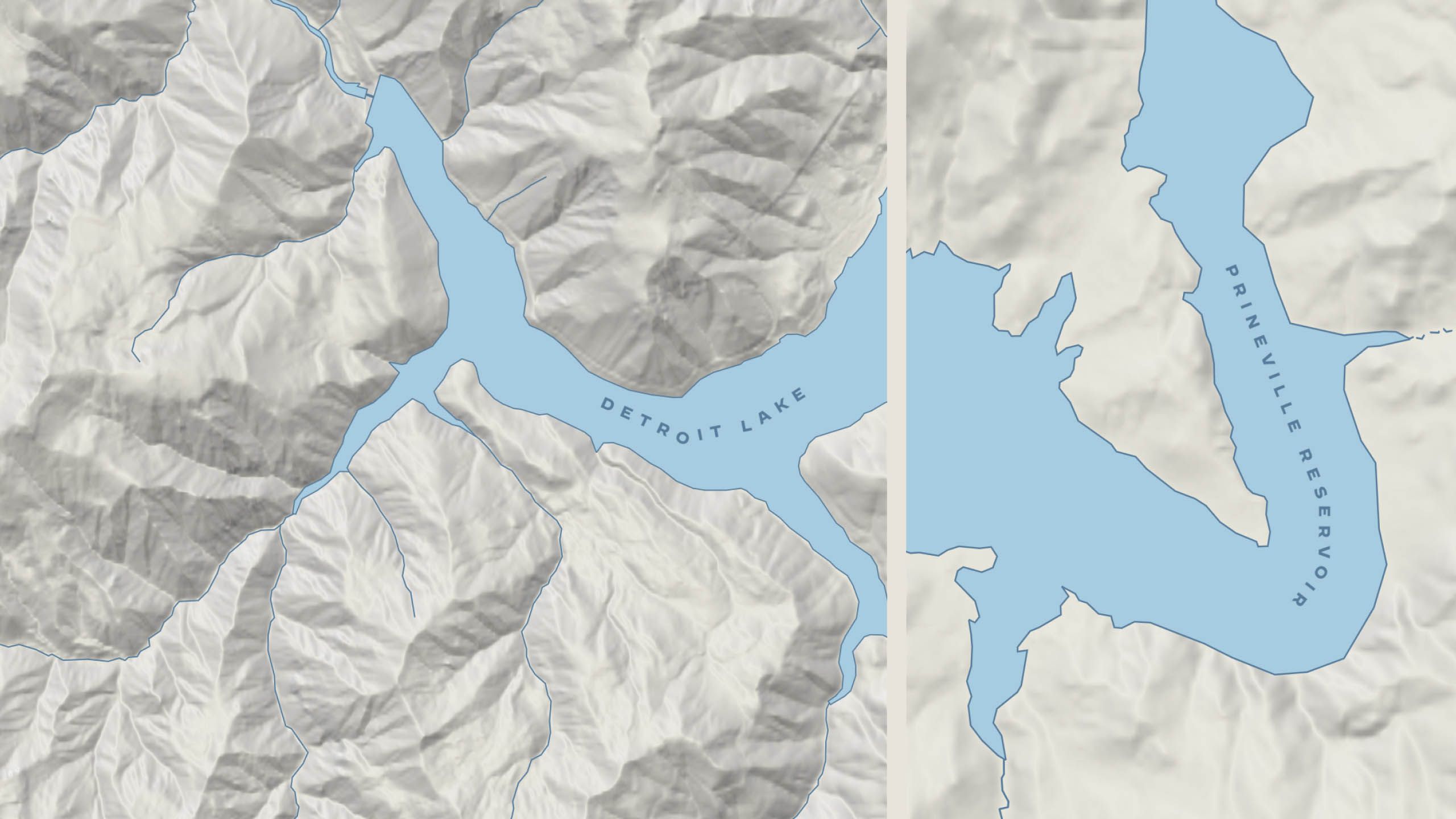Here’s how the lines look with labels placed over wider polygons, in this case lakes: