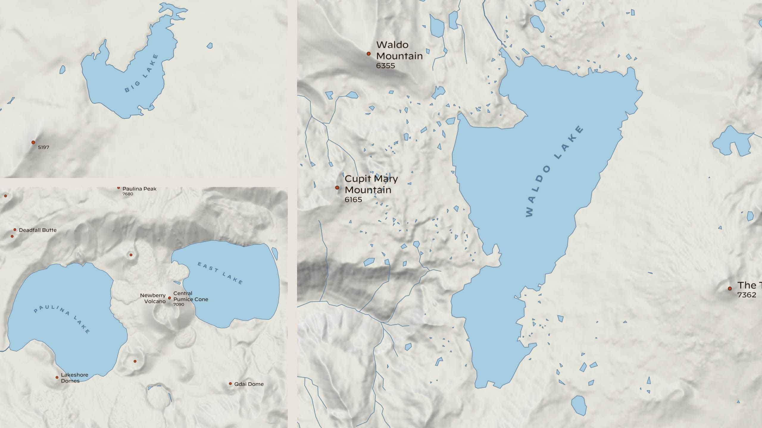 In this post, I develop a generalized method to place a label over polygonal geographic features such as lakes and glaciers. It involves creating a medial axis representing the visual center of the polygon that's smoothed with a series of B-splines to produce a line for a label.