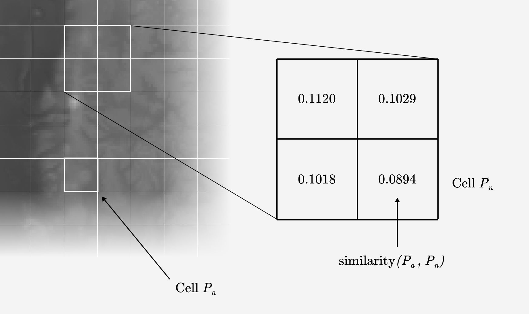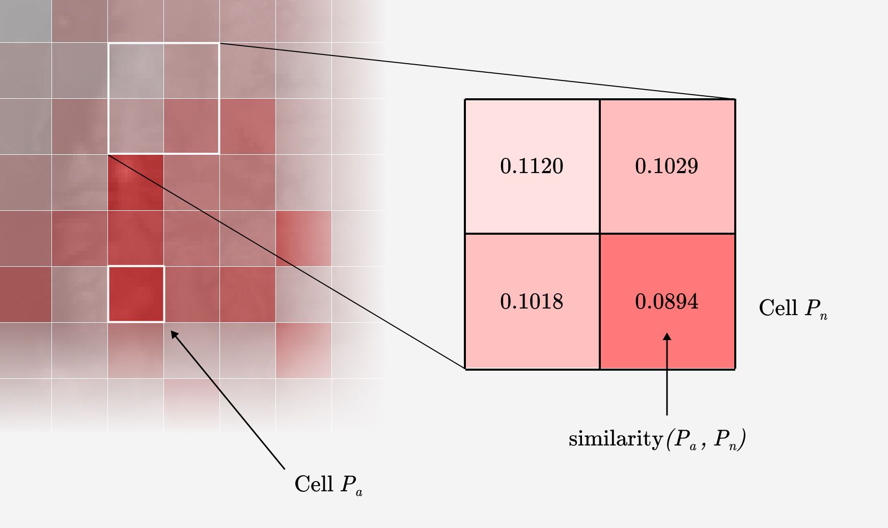 Then you compare a grid cell of interest —the coordinates a specific city—with all other grid cells. You put the metrics you’ve collected through a function such as cosine similarity or euclidean distance. These functions take two dimensional arrays and produce a measurement of the distance between them. So for each grid cell you get a single metric that quantifies that cell’s similarity to the comparison cell .